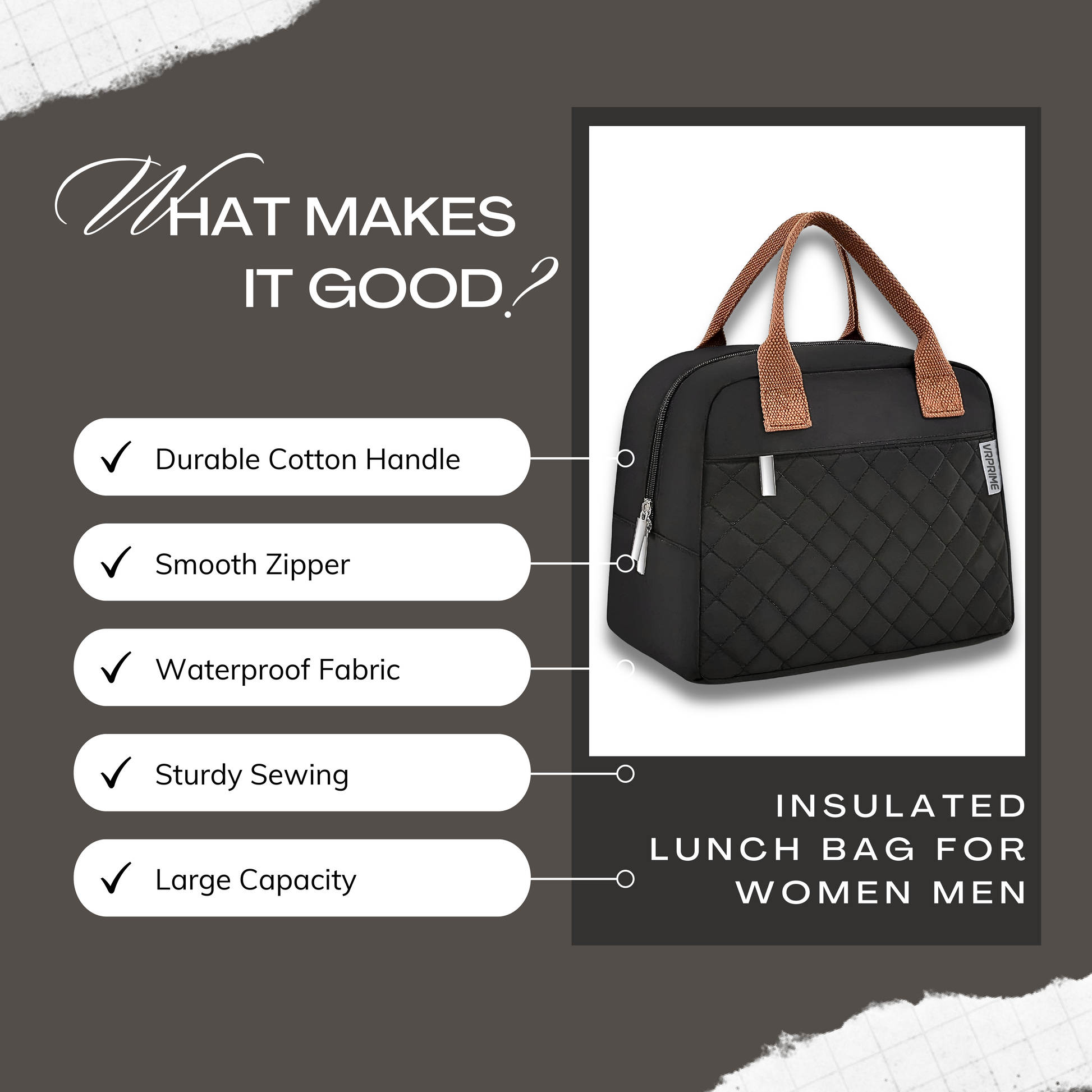 VRPRIME Lunch Bags – Insulated Tiffin Bag for Office for Men and Women – Keeps Food Hot or Cold