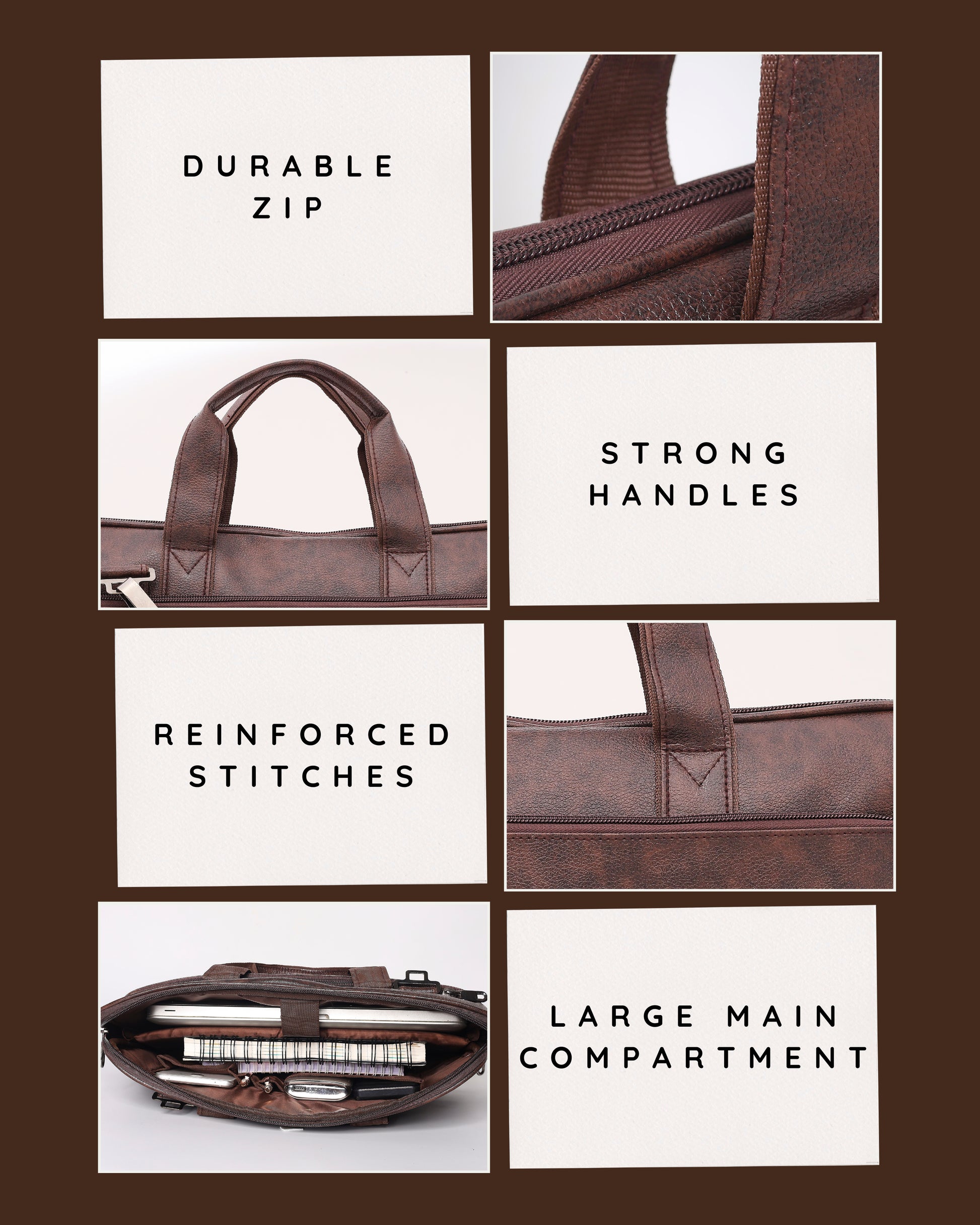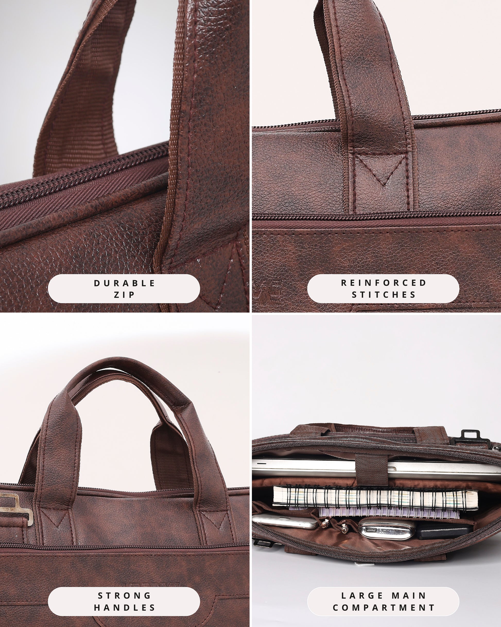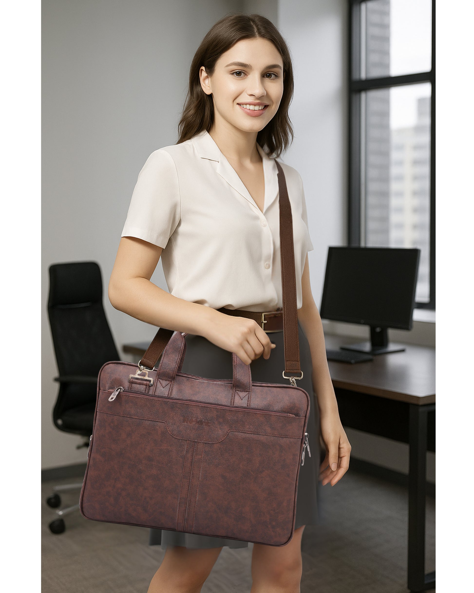With spacious compartments and organized storage, it comfortably fits documents, tablets, small laptops, wallets, chargers, and other daily essentials.