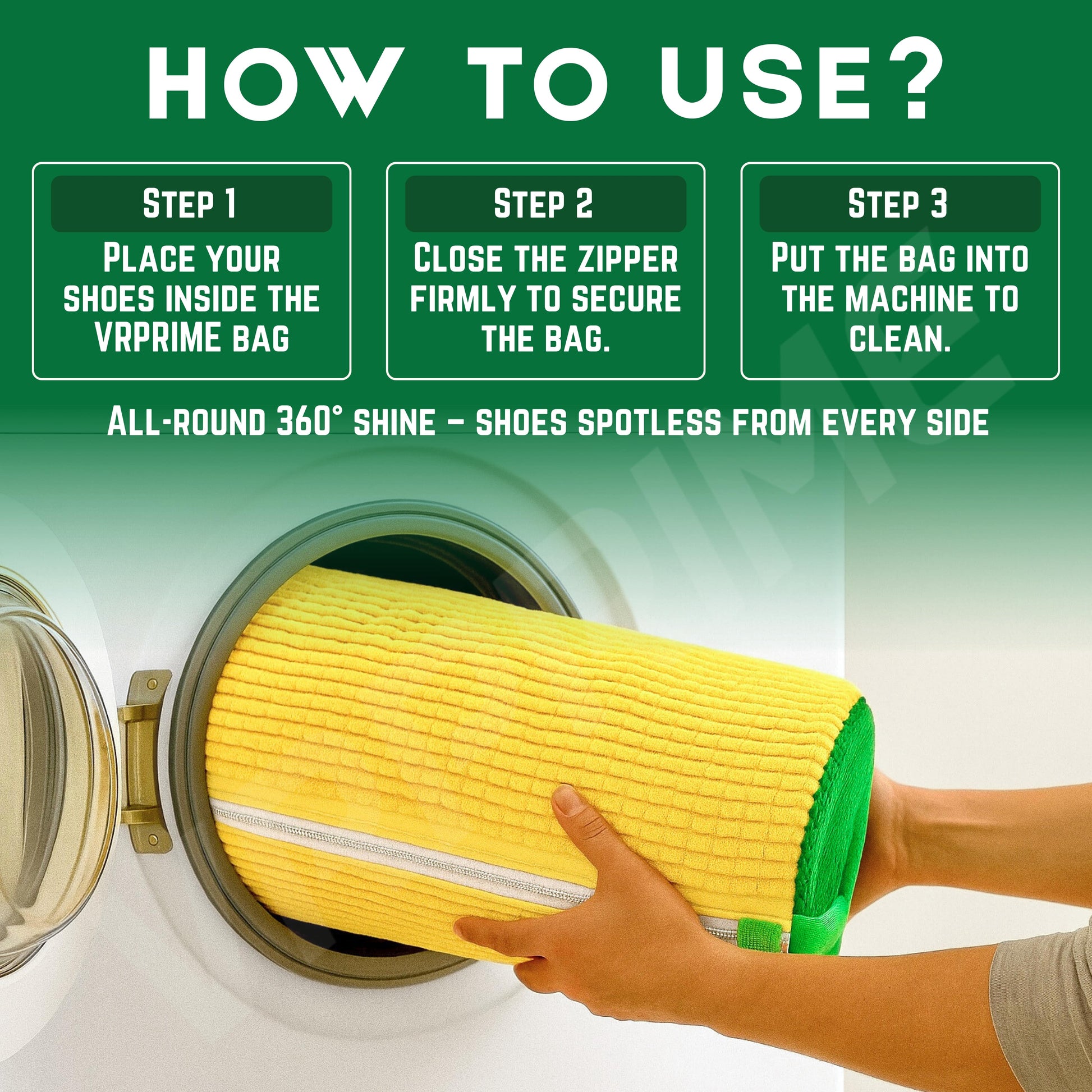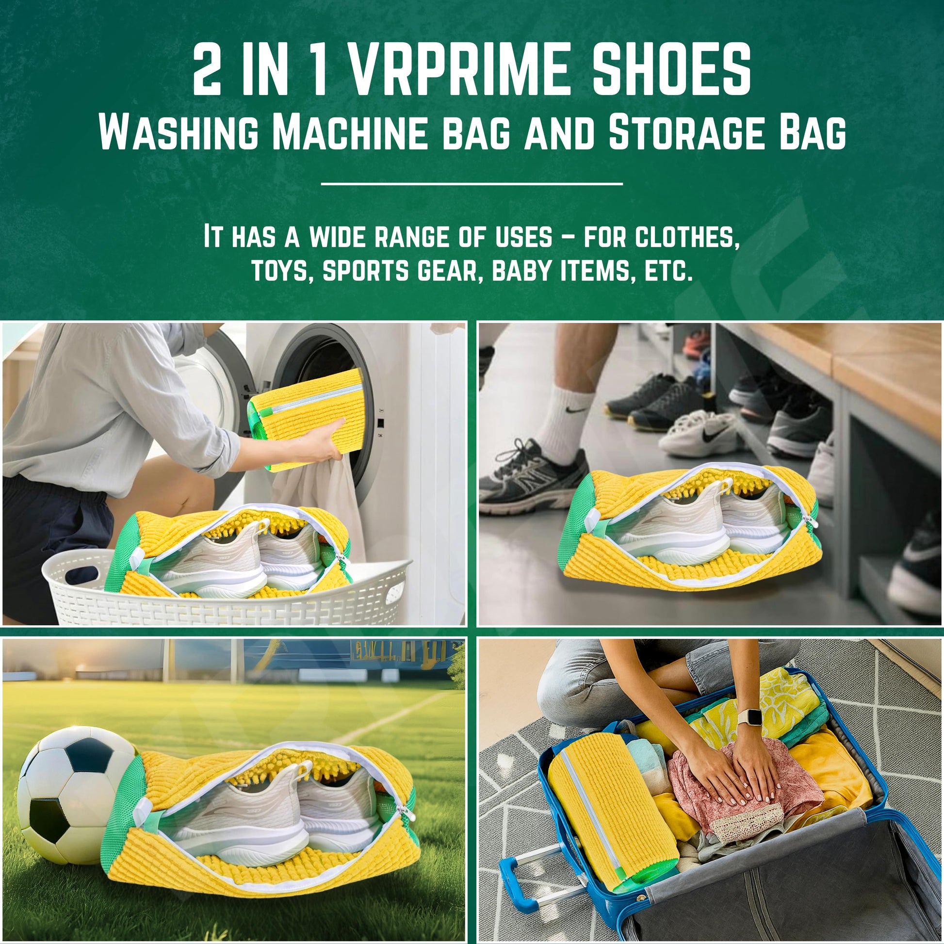 VRPRIME Shoe Washing Machine Bag | Shoe Cleaning and Travel Storage Bags | Reusable Laundry Bag 360° Cleaning for Sneakers, Delicates, Toys | Washer & Dryer Use (Yellow)